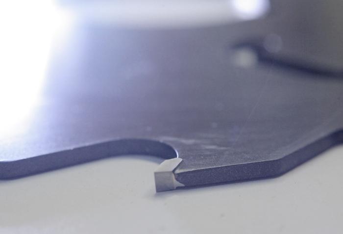 Indicada para cortes longitudinais de blocos ou pranchas de madeira resinada, em equipamento multisserras.